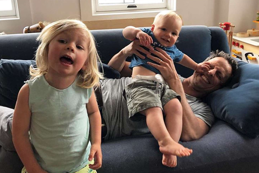Older siblings Ashe Olson Meyers, born March 27, 2016; Axel Strahl Meyers, born April 8, 2018